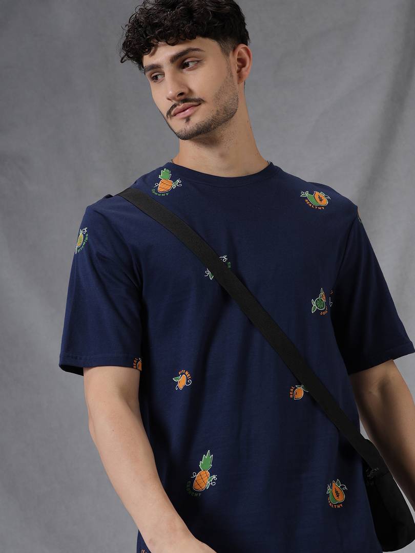 Men Printed Roun...