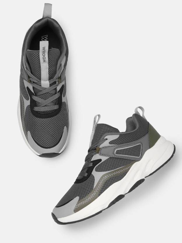 A pair of round toe grey and olive green sneakers Has regular styling Lace-up detail Synthetic woven design upper Cushioned footbed Textured and patterned outsole Warranty: 3 months Warranty provided by the brand owner/ manufacturer