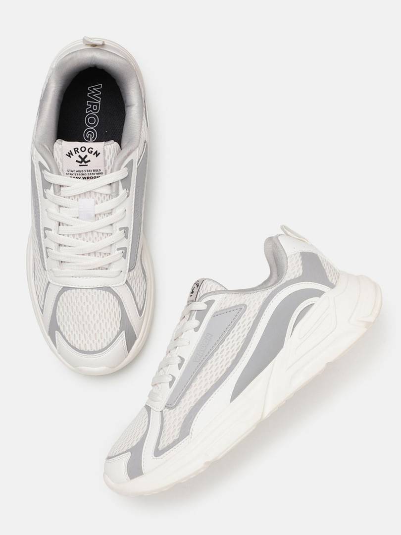 A pair of round toe white sneakers ,has regular styling, Lace-ups detail Synthetic upper Cushioned footbed Textured and patterned outsole