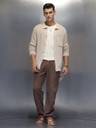 Men Solid Collared Neck Beige Sweater