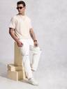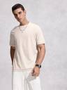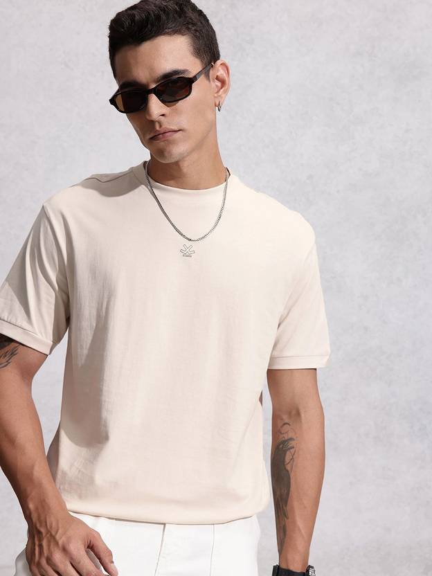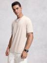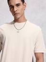 WROGN Solid Men Crew Neck Beige T-Shirt