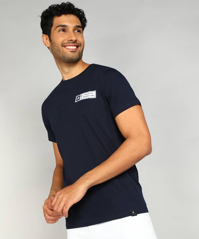 WROGN Solid Men Crew Neck Blue T-Shirt