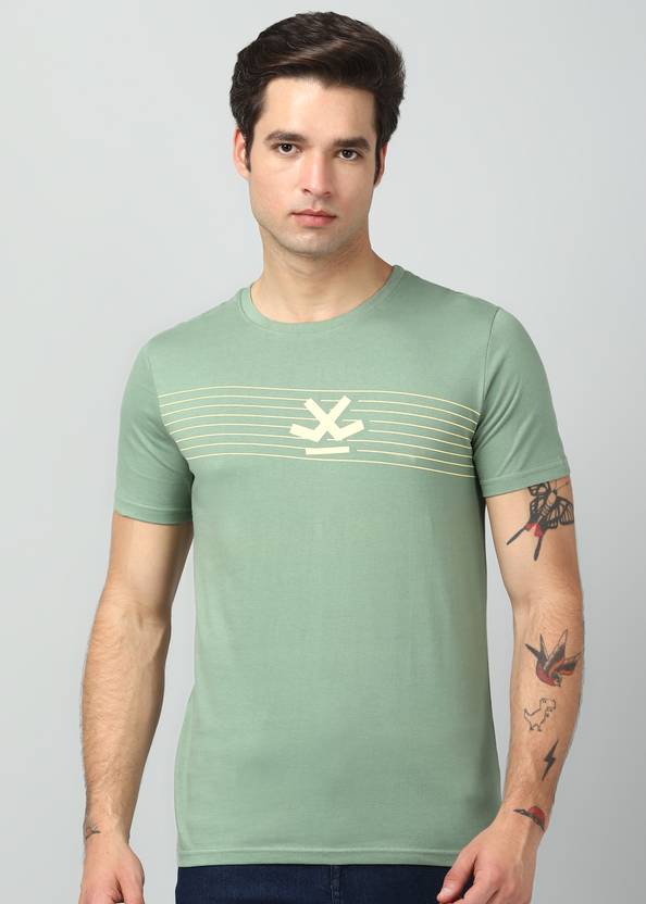 WROGN Solid Men Crew Neck Green T-Shirt
