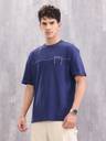 WROGN Solid Men Crew Neck Navy Blue T-Shirt