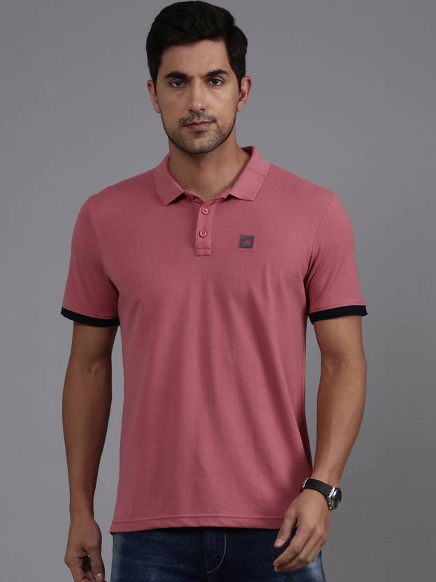 WROGN Solid Men Polo Neck Pink T-Shirt