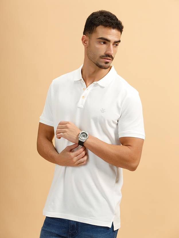 WROGN Solid Men Polo Neck White T-Shirt
