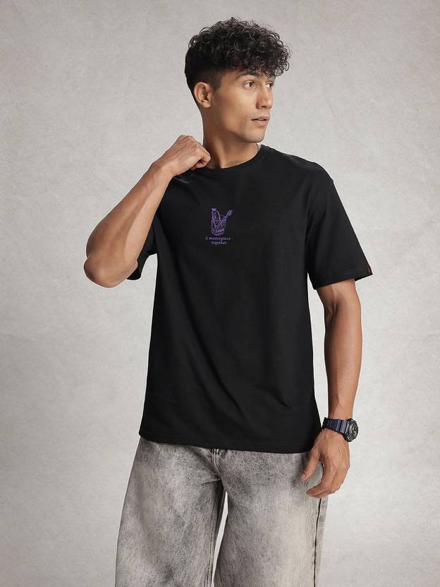 WROGN Solid Men Round Neck Black T-Shirt