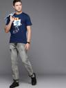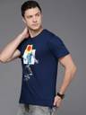 Navy blue Tshirt for men Graphic printed Regular length Round neck Short, regular sleeves Knitted pure cotton fabric .