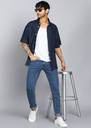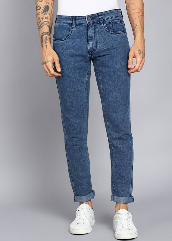 Men Tapered Fit Mid Rise Dark Blue Jeans