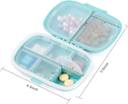 Travel Pill Organizer 8 Compartments Portable Pill Box Small Daily Pill Case Medicine Vitamin Container for Pocket Purse 8 Compartments Portable Pill Case Hold Vitamins, Cod Liver Oil The pill case has fixed lid in each compartment, and each lid can be opened or closed separately by clasp. The closed lid is sealed to keep your medicine in good condition. The daily pill organizer has 8 compartments. 6 small grids are for little pills and 2 large grids are for vitamins and capsules. keep your pills neatly and discreetly more organized. With inner closed lids, outer secure lock and silicone seal ring, keeps the pills from falling out and prevent your pill from moisture and dust.