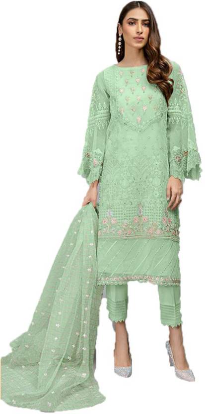 Semi Stitched Organza Salwar Suit Material Embroidered