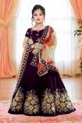 WTWC FAB Girls Lehenga Choli Ethnic Wear, Party Wear Embroidered Lehenga, Choli and Dupatta Set (Maroon, Pack of 1)