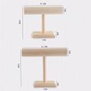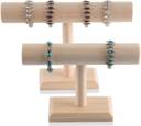 WUDORY Material: Wood Small One Total Size: 20.5cm x 20cm/ 8.07inch x 7.87inch (Approx.) Bar Diameter: 5cm/ 1.97inch (Approx.) Base Size: 12cm x 8cm/ 4.72inch x 3.15inch (Approx.) Large One Total Size: 24.5cm x 23cm/ 9.65inch x 9.06inch (Approx.) Bar Diameter: 5cm/ 1.97inch (Approx.) Base Size: 12cm x 8cm/ 4.72inch x 3.15inch (Approx.) Package Includes: 1 x Bracelet Display Stand