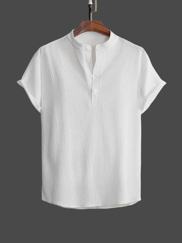 WUXI Men Solid Casual White Shirt