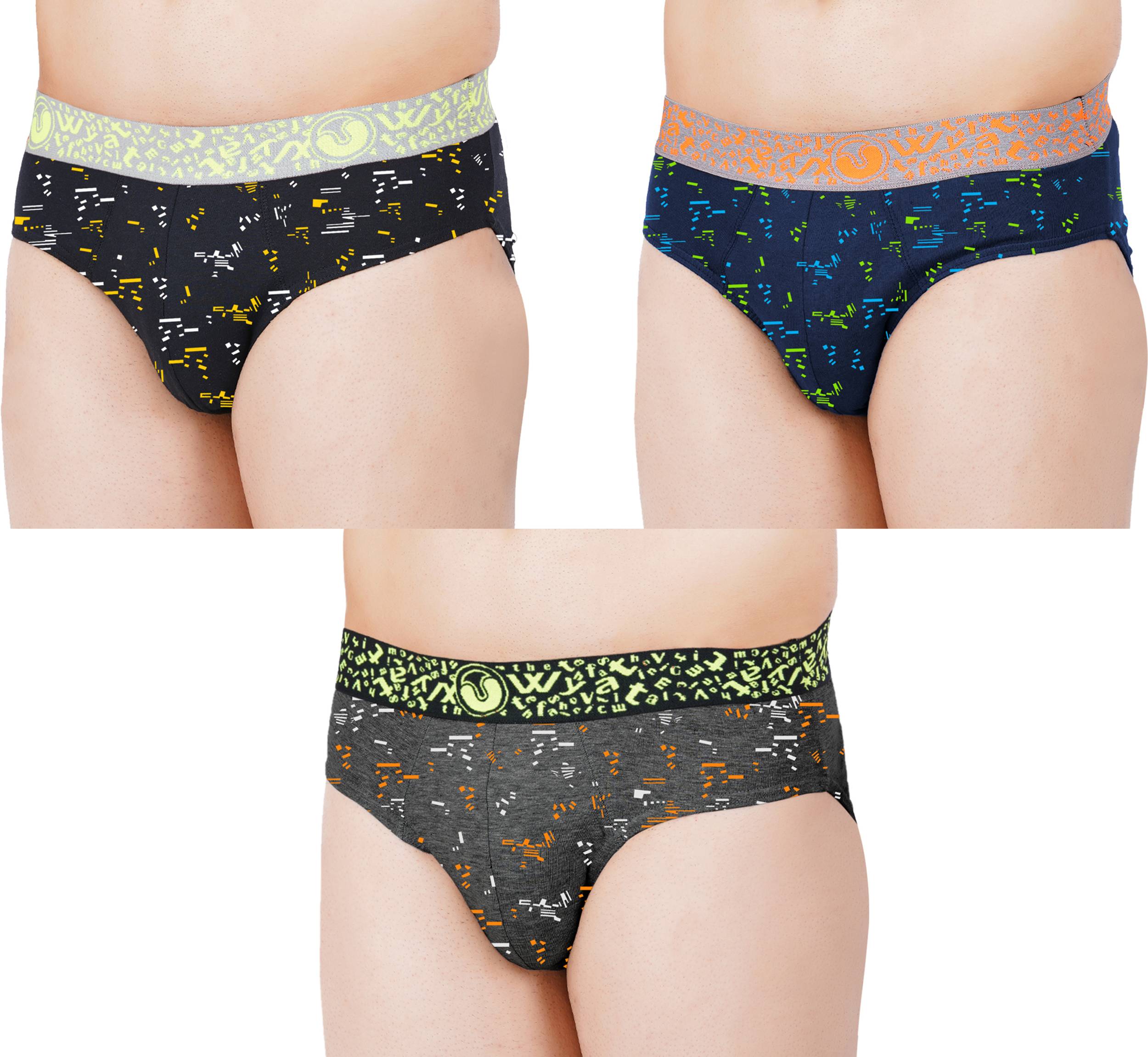 Indulge in comfort and style with WYATT printed men's briefs. Crafted from high-quality, breathable fabric, these briefs offer exceptional all-day comfort and support. The vibrant and unique prints add a touch of personality to your everyday essentials.The label free design ensures you stay at ease without any skin irritation for hours. Keeps you relaxed, cool, and fresh throughout the day.Experience the perfect blend of comfort and style with WYATT.