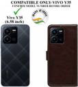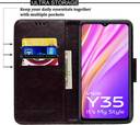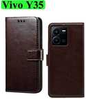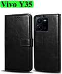 ABOUT PRODUCT:-This cover is compatible with Vivo Y35 model only and its display size is 6.58 inches (16.71 cm). Wynhard flip case provides protection by scratch dust and impacts. Mobile protection today through this fit to use executive leather stand wallet case flip cover and save yourself from the heartbreak and agony of watching the scratches and damages on your device multiply periodically. Luxurious Looks, Inner TPU Soft Gel case secures device firmly while outer flip case design safeguards your phone. This flip cover is perfect for on the go use, the card holder case features 2 card slots, a side pocket for money or additional cards, and the effective and stylish magnetic lock design secures your money and cards. Wallet Stand case enables hands free movie watching or video chatting in landscape mode. This cover suits for both men and women. Make your phone look Classic and Gorgeouse.