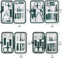 18 IN 1 Stainless Steel Professional Manicure Set Nail Cutter For Women Nail Scissors Grooming Kit with Peeling Knife, Nail Cleaning Knife, Acne Remover needle, Blackhead Tool With Leather Case 100% STAINLESS STEEL MANICURE SET- All of the manicure sets are made of high-quality stainless steel with higher strength and hardness, sharp and durable. TRAVEL PORTABLE PU LEATHER CASE-it is designed with portable size, so it is very convenient to carry, can fit into almost any handbags great for travel or at home Luxury Unique Gift Set-it , looks rich and royal, so it's a best valentine's day, birthday, anniversary, marriage, gift for men and women PRECISION STAINLESS STEEL & ULTRA SHARP BLADES-Clippers are made up of superior quality stainless steel with sufficiently sharp blades , sharpened stainless steel blades cut thick nails smoothly and easily with no need for filing