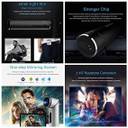 Cannon shaped pocket size (7.55*1.96*1.96 inches) with exquisite style and lightweight ( 430 gms) aluminum body, 90ðrotational lens, stepless focusing and stereo sound. Easy to carry and operate. This portable projector is the best gift and ideal for home cinema, parties or camping entertainment with families and friends. Advanced DLP technology with 70% brighter image and 50% sharper image, supporting full HD 1080P (1920*1080) with 6000:1 contrast ratio and 854*480 native resolution. Within the distance between 1-4m, It can achieve 30" to 200" big display screen size. 1.2 Ghz Quad core CPU with 1 GB RAM and 8GB Internal Memory, Wifi 2.4G, Bluetooth 4.1, Micro SD card interface, built-in 3000mAh rechargeable battery, can provide 1-2 hours of continuous work on one charge. Comes with built-in Android system. Bring your 1080p video viewing experience. 30,000 hours Long-lasting OSRAM LED lamp does not have to be replaced for 10 years even if the projector is used 7-8 hours every day. Wzatco offers its customers a 1-year warranty with life-time professional customer service & technical support. Please feel free to contact our customer service if you encounter any problems Specifications: ⢠Screen Size: 40-200 Inch ⢠Brightness: 1800 Lumens ⢠Input Terminal: HDMI,USB2.0 ⢠Contrast Ratio: 6000: 1 ⢠Projection Distance: 0.5-7M/19.6-275 Inch ⢠Screen Aspect Ratio: 16:9 ⢠Projection Screen Size: 15-300inch ⢠Size: 192x50x50mm/7.55 x1.96 x.96Inch ⢠Standard Resolution: WXGA(854*480) ⢠Output Terminal: 3.5 Earphone Jack ⢠Projection Light Source: LED ⢠Wireless Projection Function: Support Wifi/BT 4.0 ⢠Projection Way: Front Projection/Rear Projection/Ceiling Projection ⢠Power Supply: AC100-240V,50/60Hz DC19.2V,1A ⢠Adjustment Function: Auto Key stone Correction Manual-Focus ⢠Noise: <30dB ⢠Color: Black and Silver