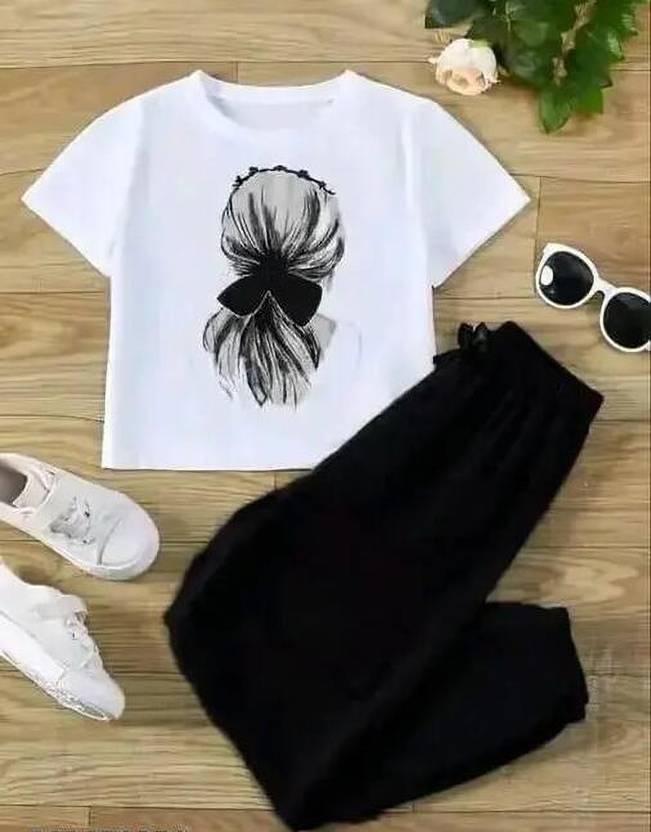New Stylish Trendy Partywear T-shirt & Bottom Sets For Women & girl's With Cargo Trouser. Girls 1pc Figure Graphic Tee With 1pc Cargo Trousers.Multicolor Casual Collar Short Sleeve Figure Embellished Slight Stretch Spring/Summer Tween Girls Clothing.Premium Quality Fabric and Fine stitching Style's Icon With Pocket's fabric is perfect for daily wear as well as party wear. May it be night party, a vacation or a shopping day, they can be easily carried on any of the occasions.