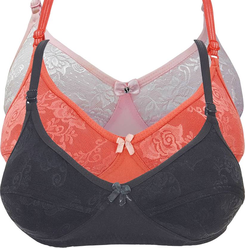 X-WELL Women Bralette Bra (Pink, Black, Orange)