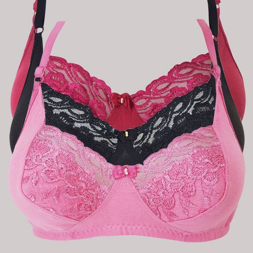 X-WELL Women Everyday Non Padded Bra (Pink, Black)