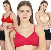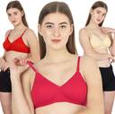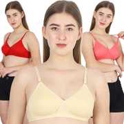 X-WELL Women Full Coverage Non Padded Bra (Red, Pink, Beige)