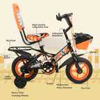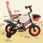 Featuring a non-geared design, this kids’ bicycle is built using modern technology to support a smooth and manageable riding experience for young learners. It includes a back seat for added comfort or support and a safe brake system to assist with steady stopping. A chain guard is included to help protect legs and clothing, while high-grade training wheels can offer stability during early riding stages. The high-quality adjustable seat and curved handlebar can be customised to fit the child’s height and reach. Additionally, the fender and plastic mudguard may protect against splashes and dirt. The magnesium alloy structure and EVA tyres offer a lightweight yet stable feel, while the pedals are designed for reliable grip and smooth movement.