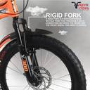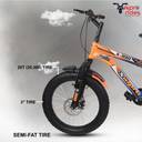 Boasting semi-fat tires, this cycle is designed for a smooth and comfortable ride over various surfaces. With a single speed and non-geared setup, it keeps things simple and easy to maintain while still providing ample traction. The front and rear disc brakes ensure effective stopping power, even on challenging paths. The high-quality frame material ensures durability and longevity, while the front suspension allows for good shock absorption on rough terrains. The cycle also includes a front derailleur, shifters, and a mudguard to keep you clean during rides.