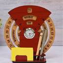 Desk Organizer and Clock for Office / Home, Bamboo (Red)
