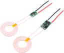 • This product is designed for wireless charging and power supply development of various series of small electronic products. • It has the characteristics of small size, easy to use, high efficiency and low price • It is mainly suitable for mobile electronic products such as mobile phones and game consoles, fish tank, MP3, MP4, adult products, digital cameras, electric razors, learning machines, medical, underwater supplies and other products • Due to the use of contactless charging power supply, the product can be completely sealed, waterproof and dustproof; Increase product life and ease of use. Module Main Parameters: • Input voltage: 9~12V • Large load current: 1.3A • Receive output voltage and current: 5V/2A, 12V/700mA • Transmitting coil size: outer diameter 43mm, thickness 2.3mm • Transmitter module size: 18mm*8.5mm*15mm • Receiver module size: 10mm*25mm*3mm • Receiver coil size: outer diameter 43mm, thickness 1.2mm • Receive common distance: 3~6mm
