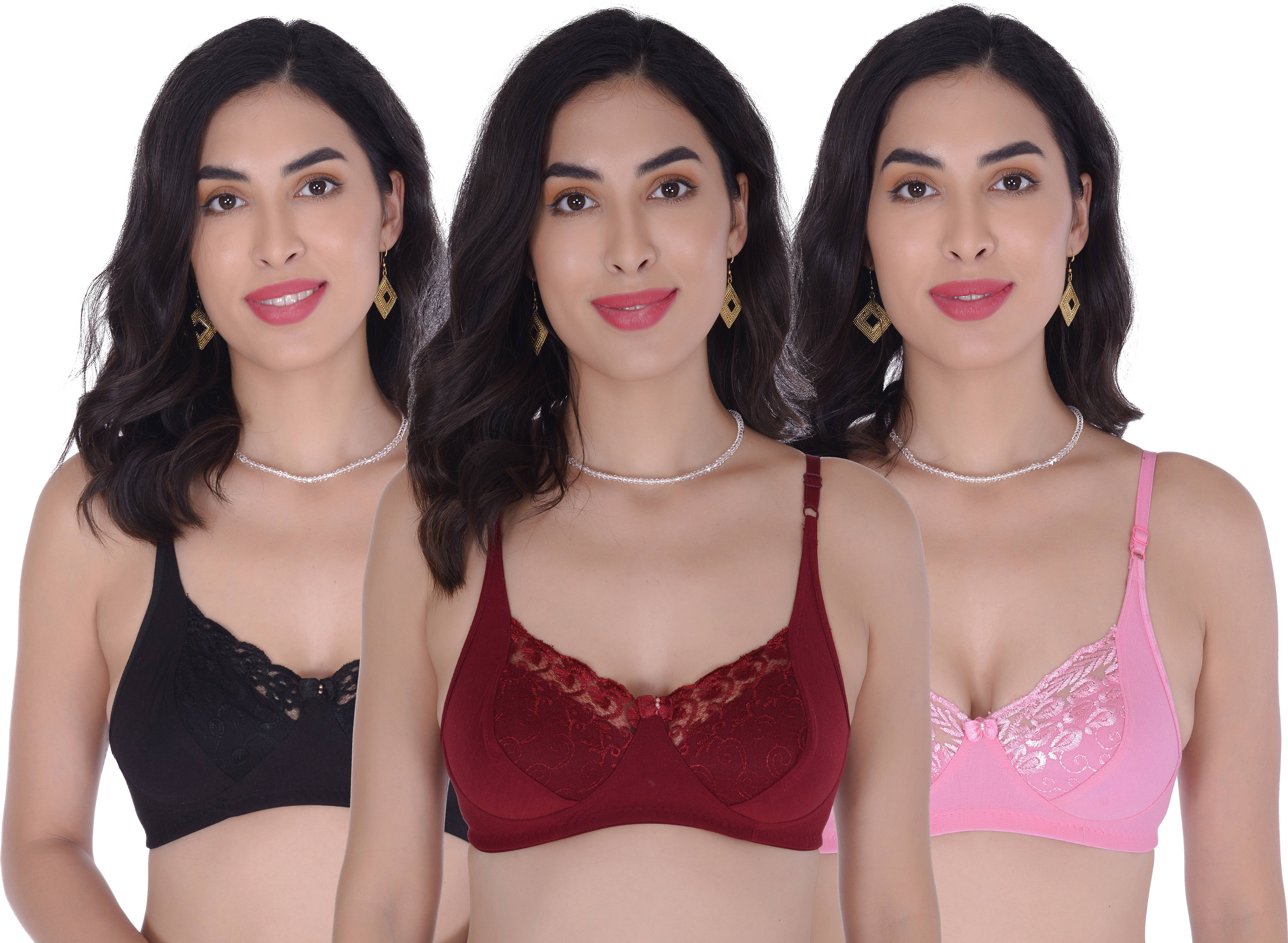 Pack of 3 Women Full Coverage Non Padded Bra (Multicolor)