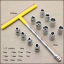 The wrench socket is made of high quality heat-treated high-carbon steel with a corrosion-resistant mirror-finished surface. It can change the spark plug quickly and easily. T-shaped design of the hex socket allows access to the nut mounted on the protruding thread. It is ideal for use on vehicle, car, motorcycle repair. Package Included:12 Pcs Sockets1 x T Shape Wrench Features: Color: Mirror silver Material: Chrome Vanadium Drive diameter: 1/2 inch Socket size: 8mm-19mm Socket height: Approx. 3.5cm/ 1.38" Wrench size: Approx. 19x28cm/ 7.48x11.02'' Single hex 6 point design deep impact sockets. The perfect tool for professional or DIY use. Made of premium chrome vanadium steel with a protective black oxide finish Work faster and avoid unnecessary disassembly steps with this tool kit. Item Name: Socket Wrench Set Material: High-carbon Steel Socket Type: Inner Hexagon Socket Specifications: 8mm, 9mm, 10mm, 11mm, 12mm, 13mm, 14mm, 15mm, 16mm, 17mm, 18mm, 19mm Features: T-type, Portable, Repair Tool Wrench Length: 27cm/10.63" (Approx.) Wrench Width: 19cm/7.48" (Approx.) Notes: Due to the light and screen setting difference, the item's color may be slightly different from the pictures. Please allow slight dimension difference due to different manual measurement. Package Includes: 1 x Wrench 12 x Sockets Similar Items