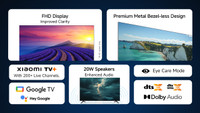 This Xiaomi A Series TV offers an exceptional visual experience with enhanced visuals, vivid clarity, and robust audio, featuring a metallic bezel-less design for expansive viewing. It includes powerful 20 W speakers, Dolby Audio, DTS X, and DTS Virtual X for unparalleled depth and clarity. Enjoy free access to live channels via Xiaomi TV+, Google Cast Built-in, and tailored entertainment through PatchWall. This TV ensures peak performance with efficient processing power, a remote control, and various ports for effortless connectivity.