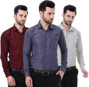 A cotton blend formal shirt for men combines the best of comfort and style, making it a versatile addition to any wardrobe. Crafted from a blend of cotton and synthetic fibers, it offers the softness and breathability of cotton with enhanced durability and wrinkle resistance. Designed for a polished look, it features a structured collar, neat button closures, and a refined silhouette that complements both professional and semi-formal settings. The fabric ensures a smooth finish and a comfortable fit, making it ideal for long hours at work or special occasions. Whether paired with tailored trousers for a business-ready ensemble or layered under a blazer for an elegant touch, this shirt is a reliable choice for effortless sophistication.