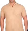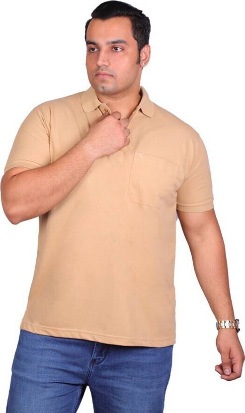 HouseOfCommon Men Solid Polo Neck Cotton Blend Beige T-Shirt