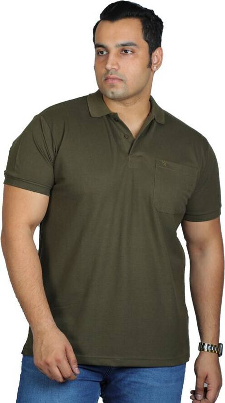HouseOfCommon Men Solid Polo Neck Cotton Blend Green T-Shirt