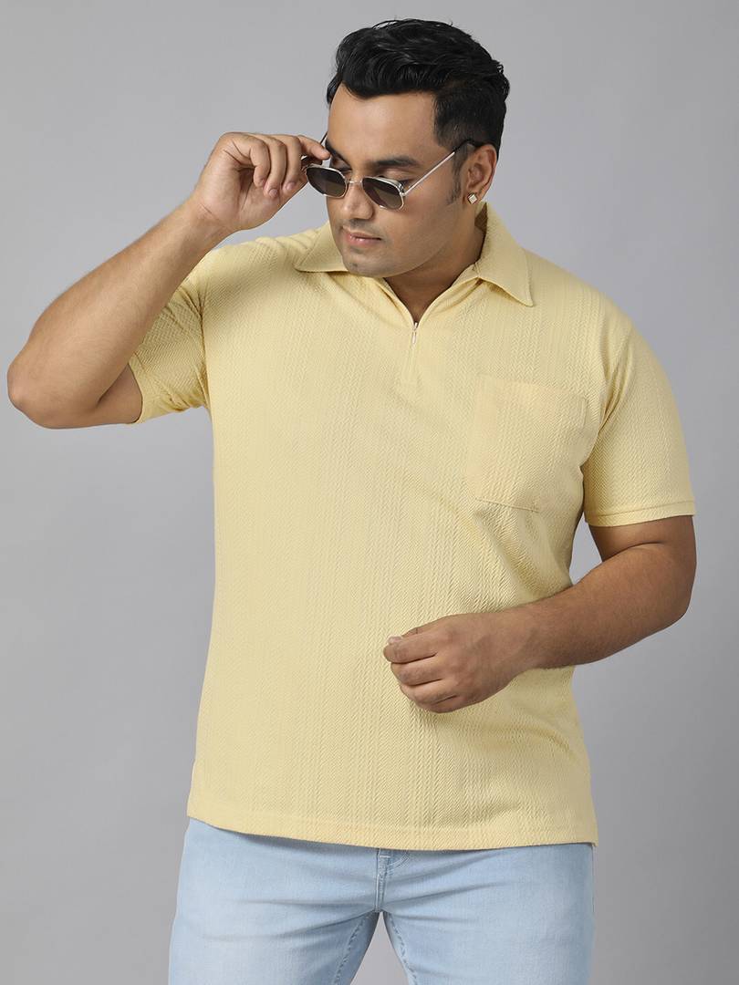 "Experience the perfect blend of comfort, style, and practicality with this Men's Plus Size Textured Polo Neck Half Sleeve T-Shirt. Specially tailored for plus-size men, this polo offers a relaxed fit that ensures maximum comfort without compromising on style. Crafted from high-quality textured fabric, it delivers a soft, breathable, and skin-friendly feel, making it suitable for year-round wear.