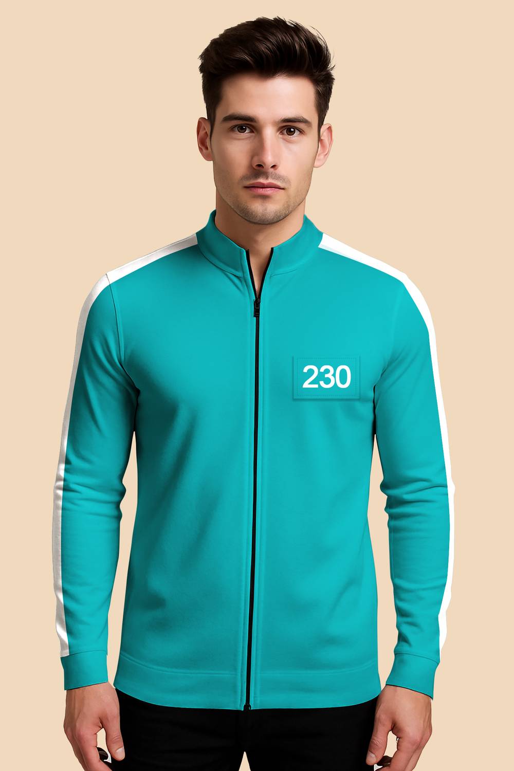 it features a front zipper closure, full sleeves, and two zippered pockets for practicality. The jacket includes contrast black piping and cuff grip for a sporty, modern look. Perfect for windy or light rainy days,