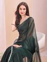 XOOM LADY Solid/Plain Bollywood Jimmy Jimmy Saree (Green)