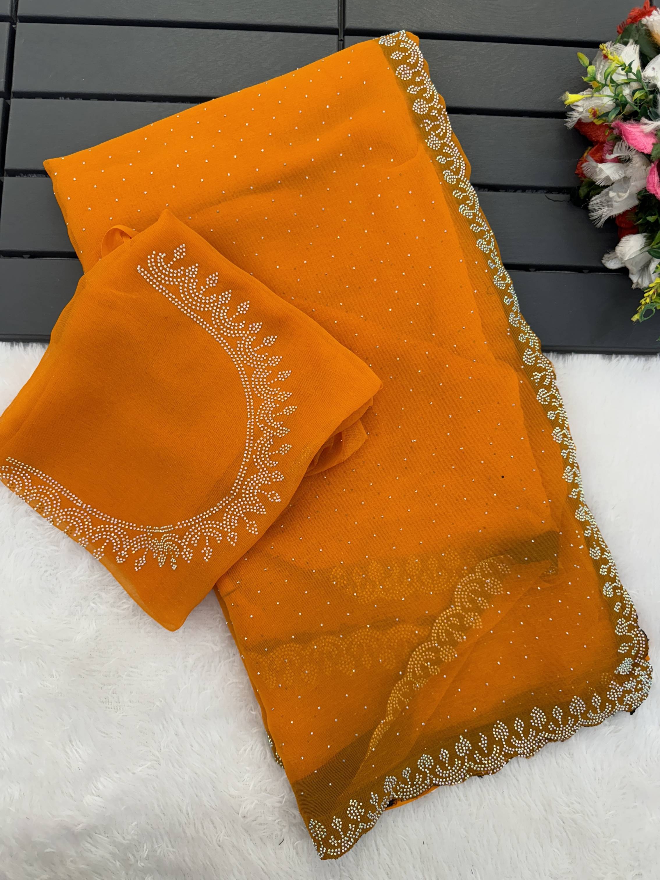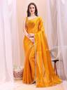 Elevate your ethnic wardrobe with this elegant saree, crafted from soft, lightweight fabric that drapes beautifully for a flattering silhouette. The saree features a shimmering sheen that adds a touch of glamour, while the silver scalloped lace border enhances its sophisticated appeal. Ideal for festive occasions, weddings, and evening parties, this saree is a timeless blend of simplicity and elegance. Pair it with statement jewelry and heels to complete your look.