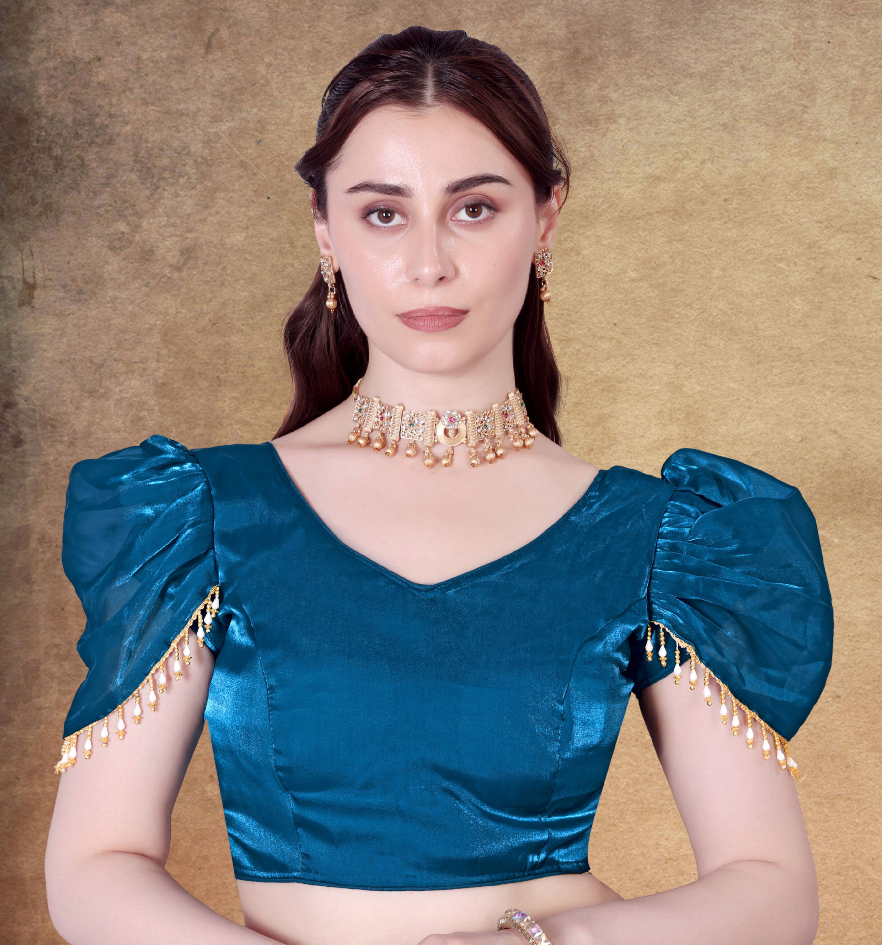 Elevate your ethnic wardrobe with this elegant saree, crafted from soft, lightweight fabric that drapes beautifully for a flattering silhouette. The saree features a shimmering sheen that adds a touch of glamour, while the silver scalloped lace border enhances its sophisticated appeal. Ideal for festive occasions, weddings, and evening parties, this saree is a timeless blend of simplicity and elegance. Pair it with statement jewelry and heels to complete your look.