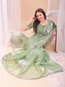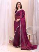 Elevate your ethnic wardrobe with this elegant saree, crafted from soft, lightweight fabric that drapes beautifully for a flattering silhouette. The saree features a shimmering sheen that adds a touch of glamour, while the silver scalloped lace border enhances its sophisticated appeal. Ideal for festive occasions, weddings, and evening parties, this saree is a timeless blend of simplicity and elegance. Pair it with statement jewelry and heels to complete your look.