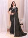 Elevate your ethnic wardrobe with this elegant saree, crafted from soft, lightweight fabric that drapes beautifully for a flattering silhouette. The saree features a shimmering sheen that adds a touch of glamour, while the silver scalloped lace border enhances its sophisticated appeal. Ideal for festive occasions, weddings, and evening parties, this saree is a timeless blend of simplicity and elegance. Pair it with statement jewelry and heels to complete your look.