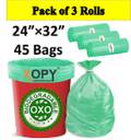 XOPY Biodegradable Green Garbage Bags 24*32 inches 3 Roll Large 25 L Garbage Bag Pack Of 45 (45Bag )