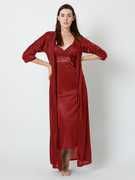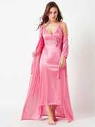xperience luxury and comfort with the Xpios Satin Nightshirt Set in an elegant shade. This soft satin sleepwear is designed to offer a smooth and breathable feel, making it perfect for a relaxing night. The two-piece set includes a full-length nightgown with delicate lace detailing and a matching robe, creating a stylish yet comfortable look. Ideal for loungewear, bridal nightwear, or special occasions, this nightdress ensures both elegance and relaxation.