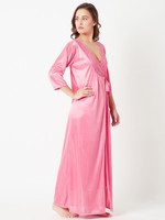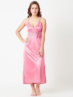 The solid design of the nightgown adds a touch of refinement and classic elegance. The solid design gives an opulent touch and produces a polished, streamlined appearance. The rich lace detailing adds a bit of charm to the look of the nighty. The simplicity of the design makes sure that you appear elegant while wearing the nighty set.