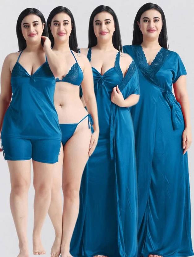Dreamy Drapes Women Nighty with Robe (Blue)