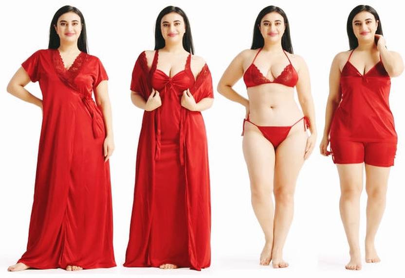 Dreamy Drapes Women Nighty with Robe (Red)