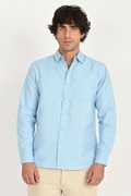 XUFA Men Solid Casual Dark Blue Shirt