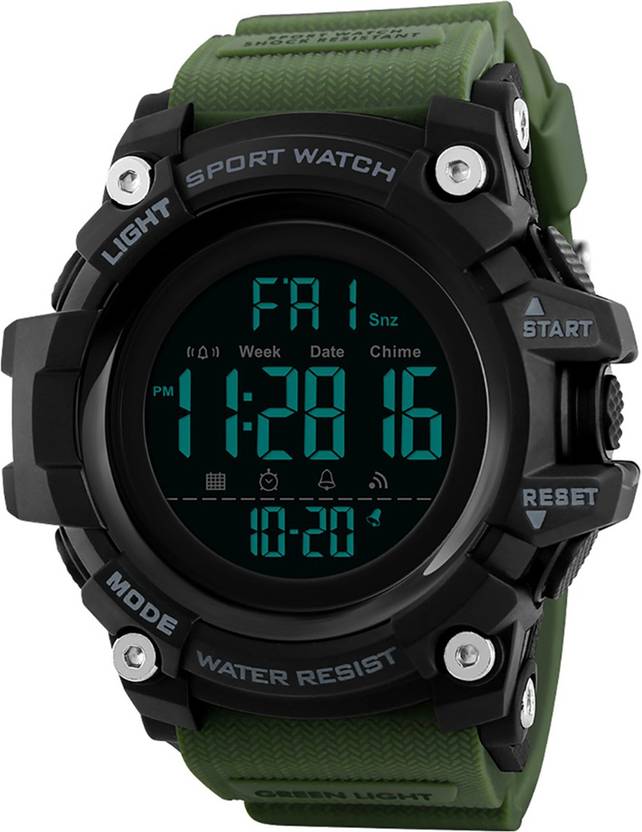 Multi Function Sports watch with Stopwatch, Dual Time Zone settings, Improved lighting, Dat & Day Display, Year Display, Big Digit Display. Suitable for all you fashion needs.